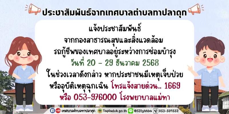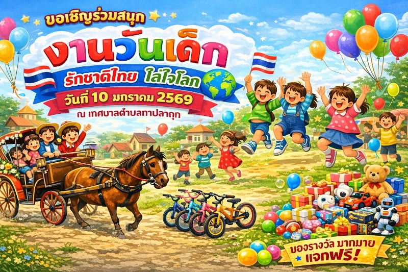 เทศบาลตำบลทาปลาดุก ขอขอบคุณผู้ใหญ่ใจดี บริษัท วาคิณ ซัพพลาย แอนด์ เซอร์วิส จำกัด (WAKIN SUPPLY AND SERVICE COMPANY LIMITED) " ที่ได้ให้การสนับสนุนของรางวัล เพื่อใช้เป็นของรางวัลในกิจกรรมวันเด็กแห่งชาติ ประจำปี 2569 ในวันเสาร์ที่ 10 มกราคม 2569 ณ เทศบาลตำบลทาปลาดุก